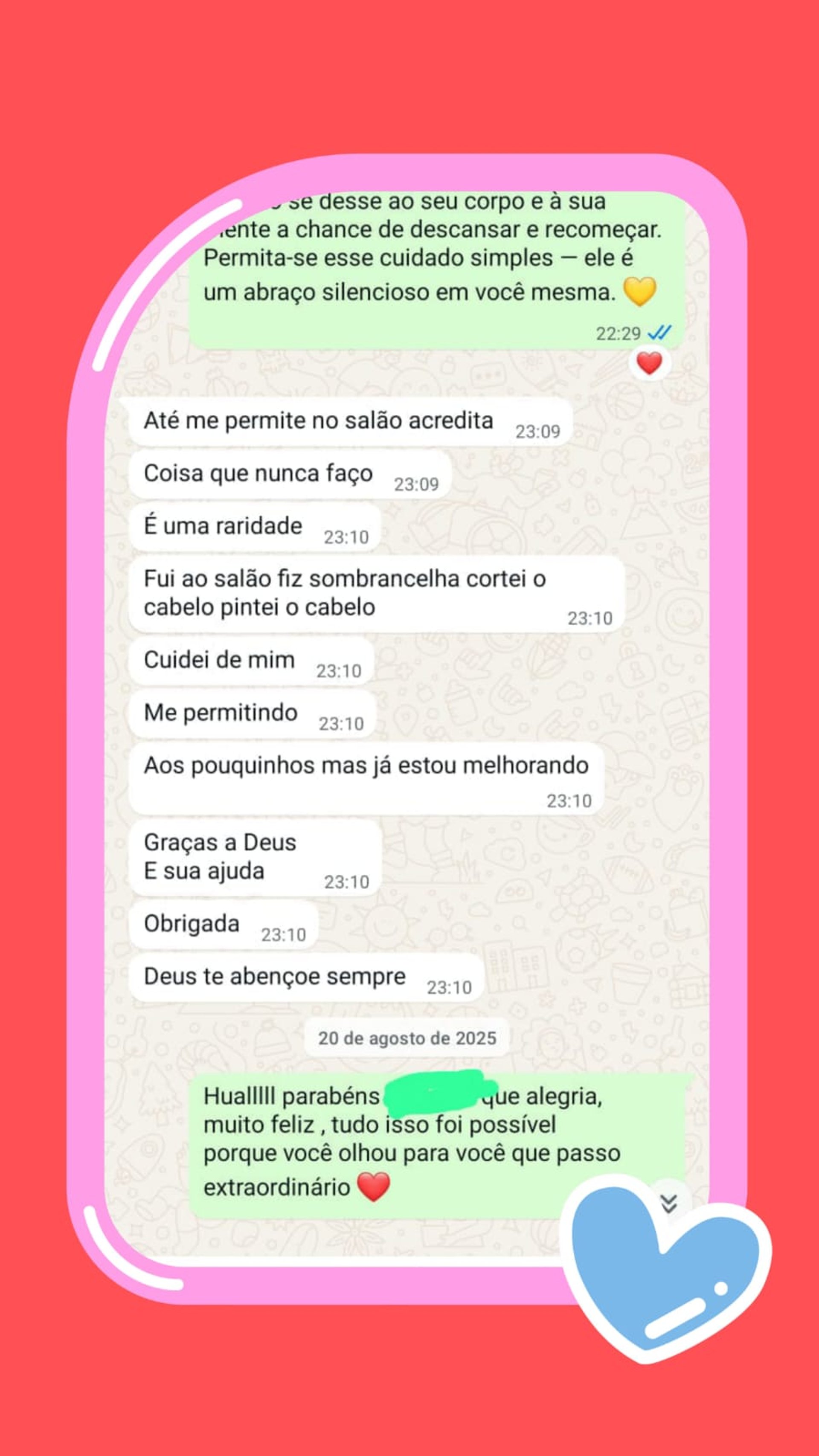Atuo com ética e dedicação no acolhimento e desenvolvimento emocional, promovendo autoconhecimento, equilíbrio e transformação de vidas.